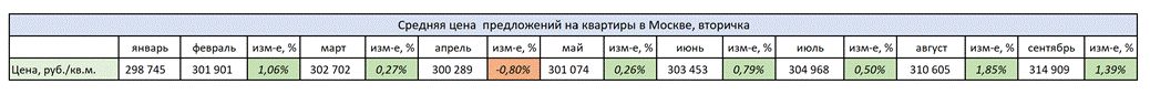 По итогам сентября средняя цена предложений 1 кв.м. московской недвижимости на вторичном рынке показала рост на 1,4% по сравнению с августом месяцем.