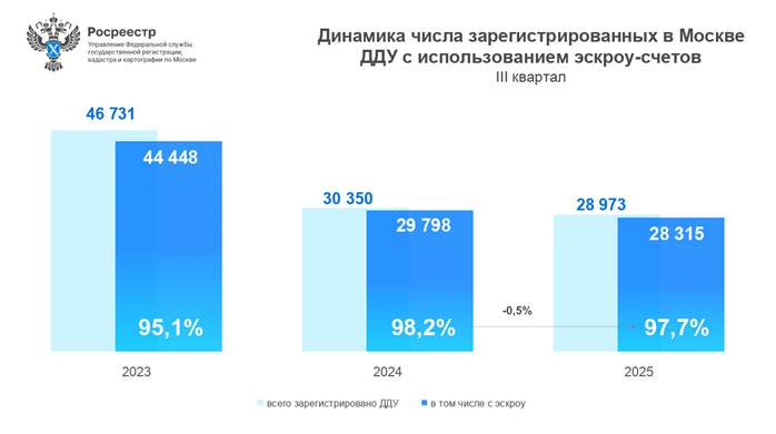 Росреестр Москва: Почти 100% ДДУ в Москве оформлены с применением эскроу в III квартале 2025 года
